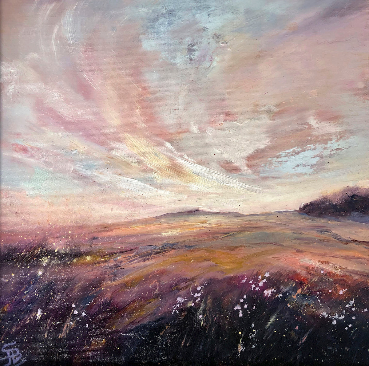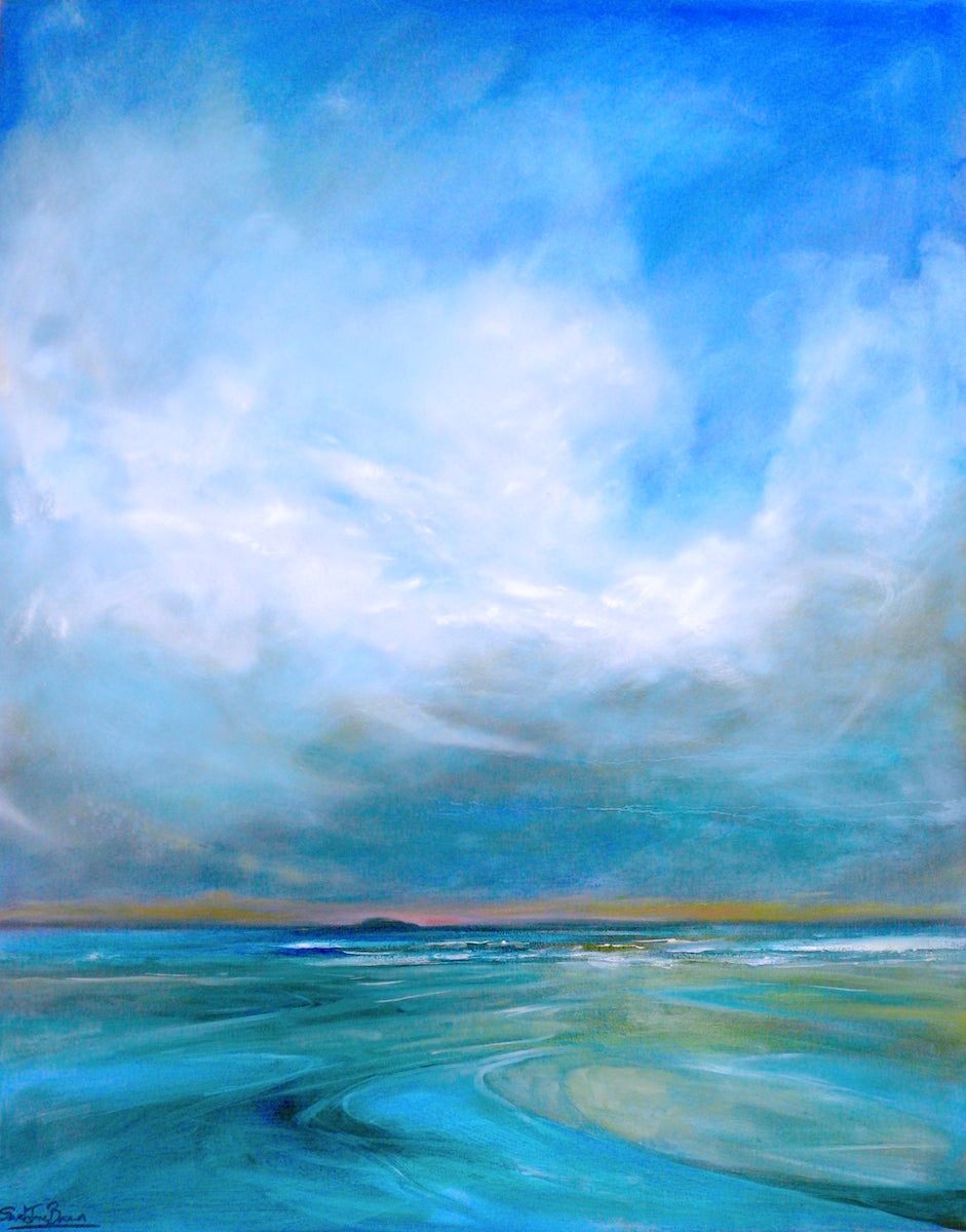 Sarah Jane's paintings reflect internal landscapes through the beauty of the Pembrokeshire skies and countryside, the natural drama of the elements and the sea.