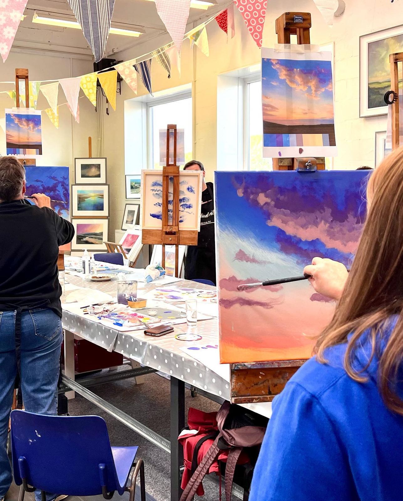 As we are located in the Pembrokeshire Coast National Park, some of our longer workshops may involve making some sketches or studies outdoors and then more time developing paintings in the studio. It depends largely on the weather, but also on the type and duration of the course.